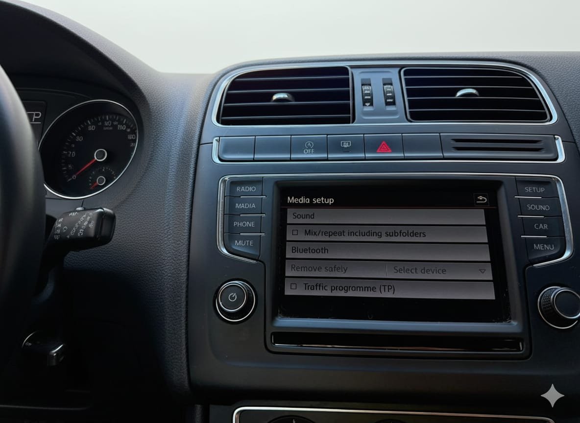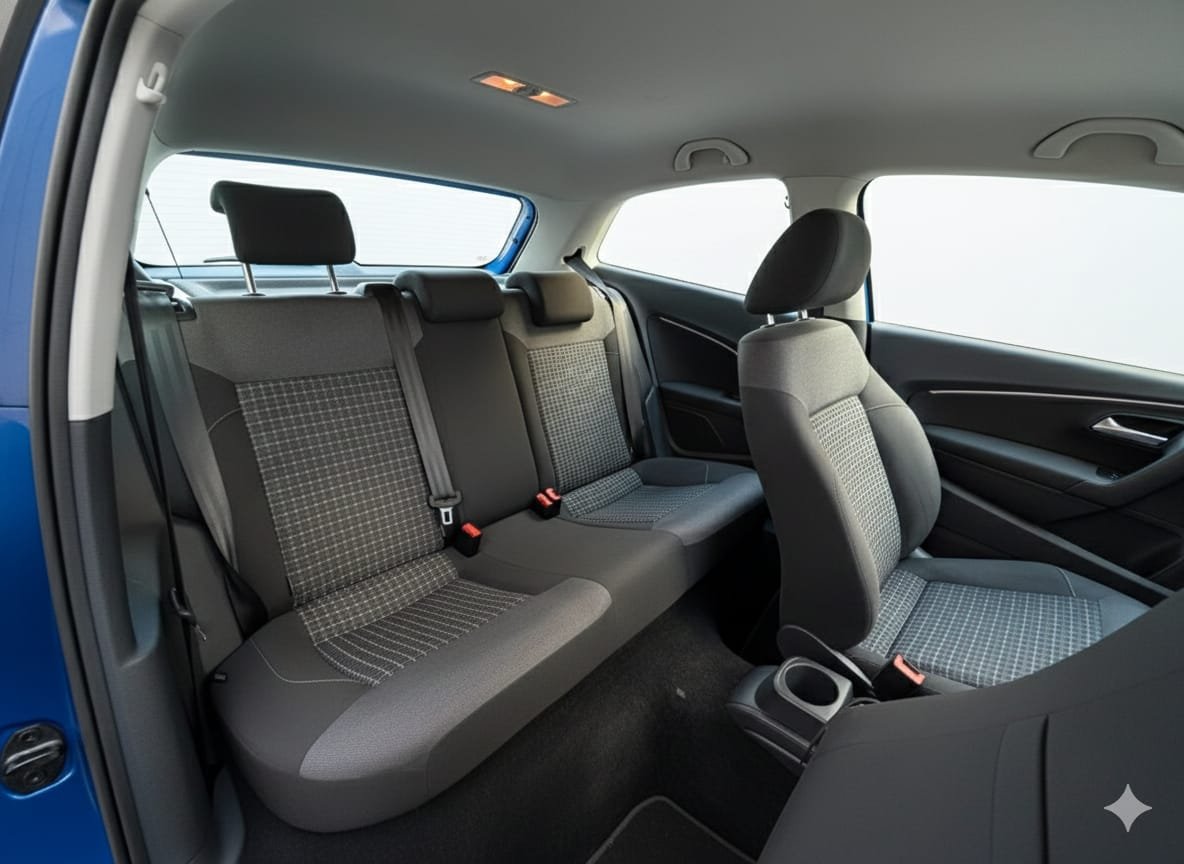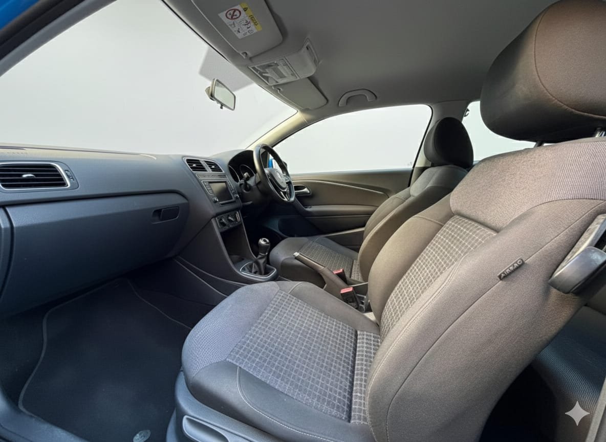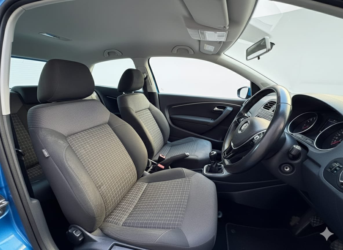 Inside, the Polo gives you everything you need for daily use: a clean and modern cabin, comfortable seats, touchscreen infotainment, Bluetooth, USB connectivity, air conditioning and good storage. It’s the perfect size for city driving and still feels steady on the motorway.